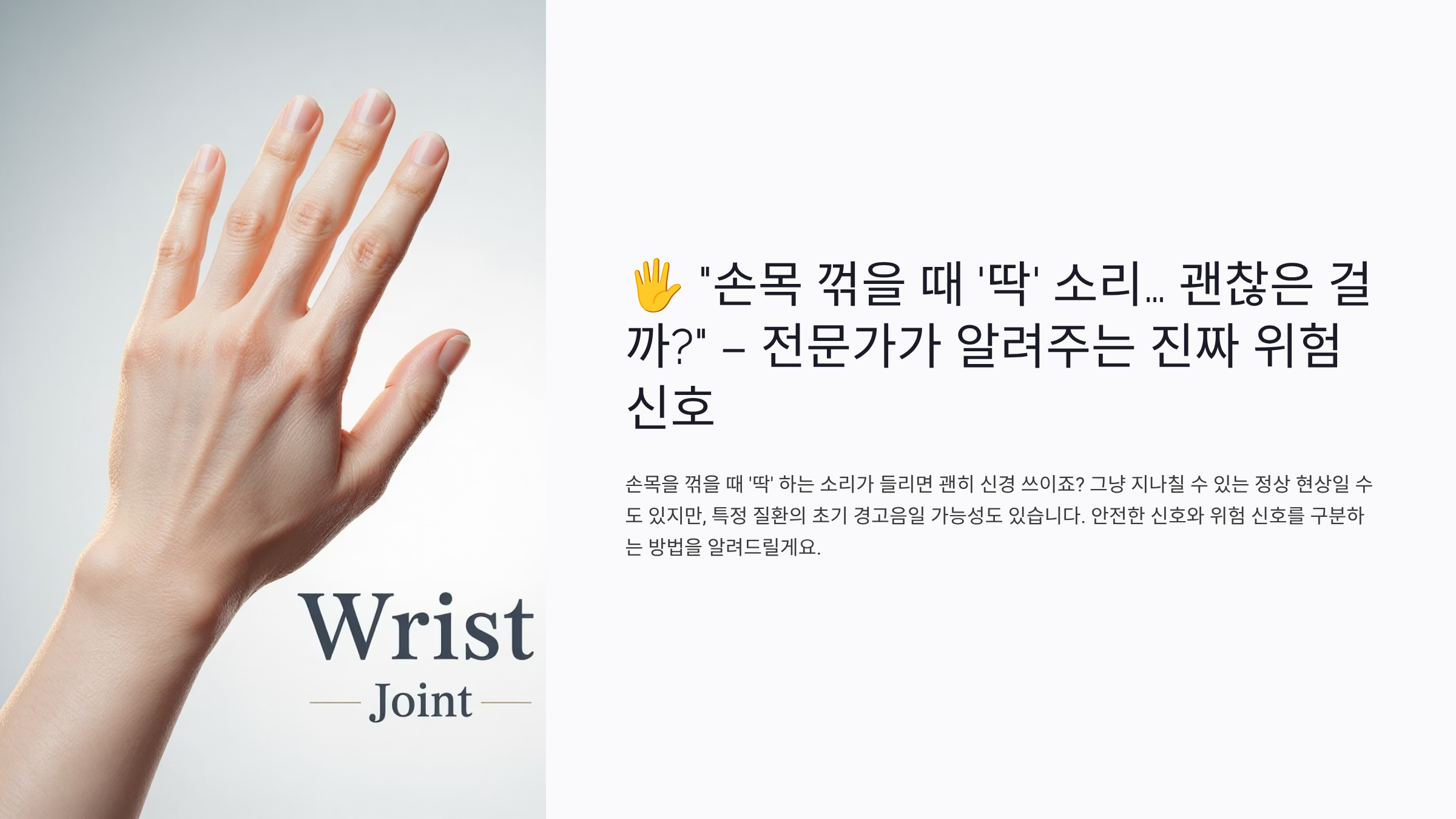 손목을 꺾을 때 ‘딱’ 하는 소리가 들리면 괜히 신경 쓰이죠? 그냥 지나칠 수 있는 정상 현상일 수도 있지만, 특정 질환의 초기 경고음일 가능성도 있습니다. 안전한 신호와 위험 신호를 구분하는 방법을 알려드릴게요.