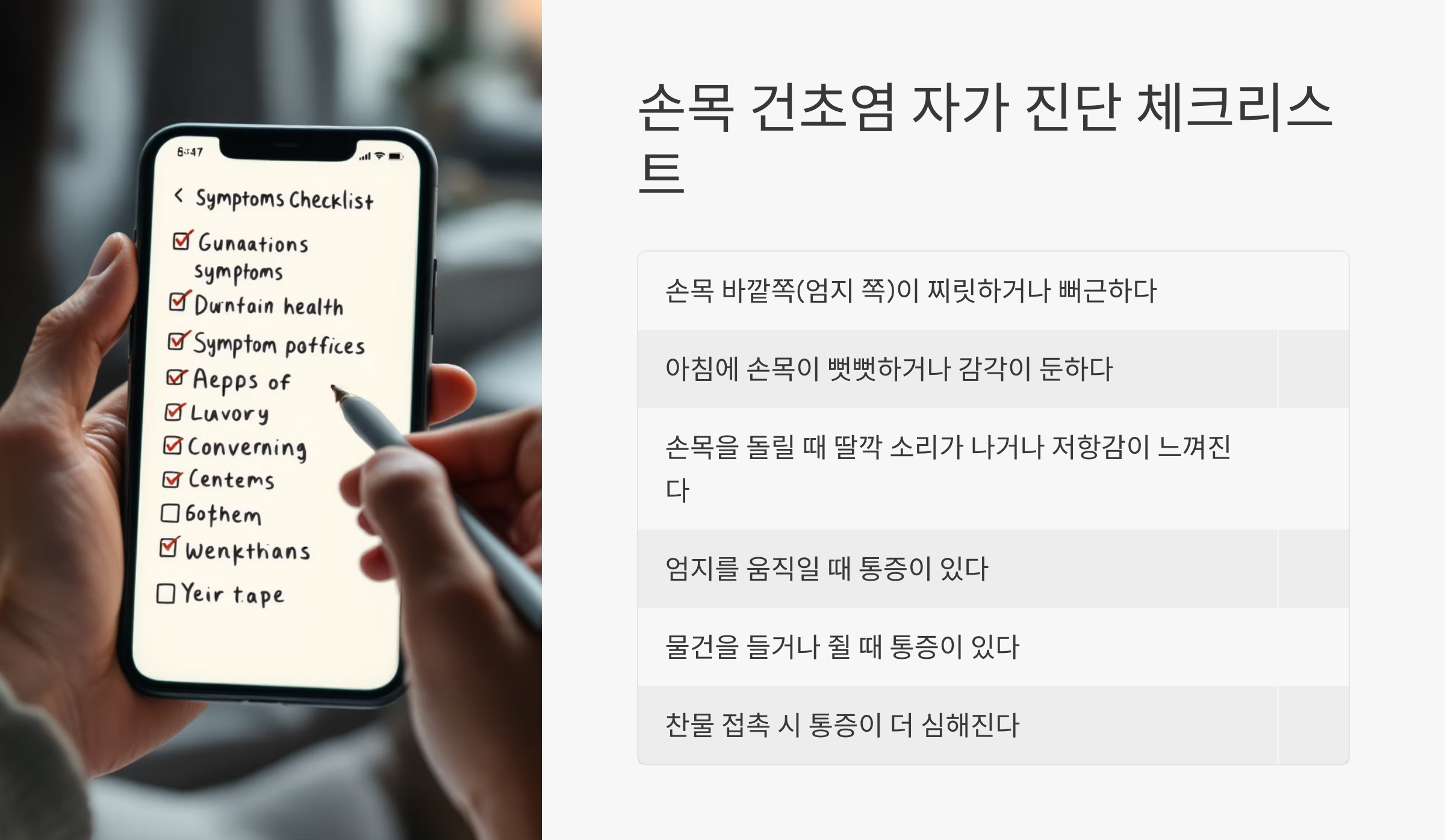 - 손목 건초염 자가 진단 체크리스트