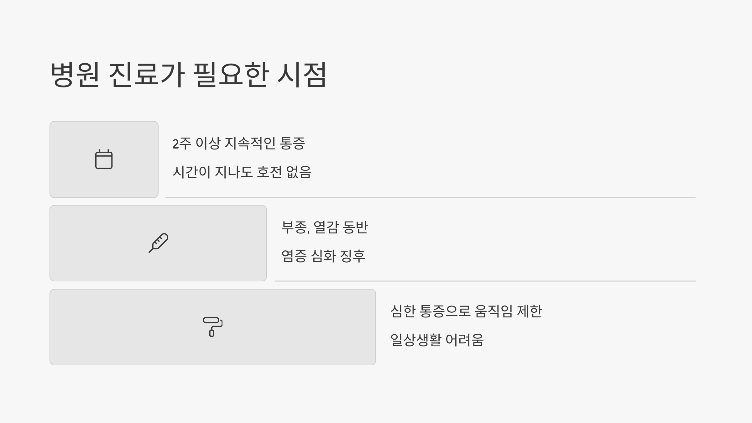 - 병원 진료가 필요한 시점