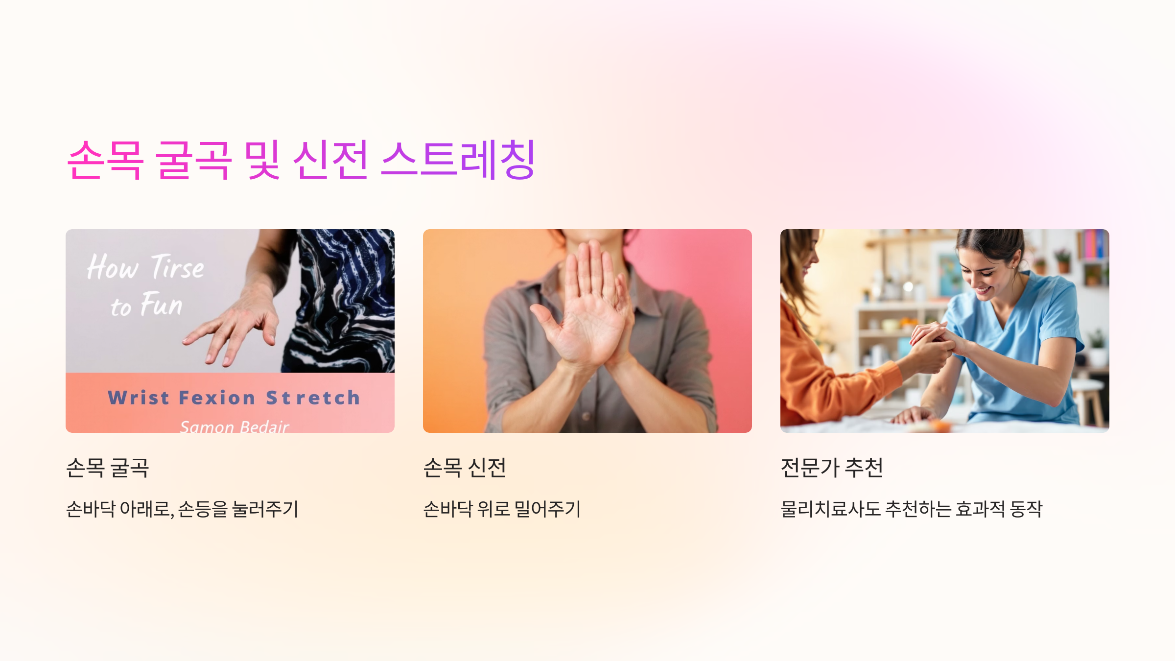 📌 평소에도 손목을 너무 꺾거나 반복적으로 사용하는 행동은 피하는 게 좋아요.