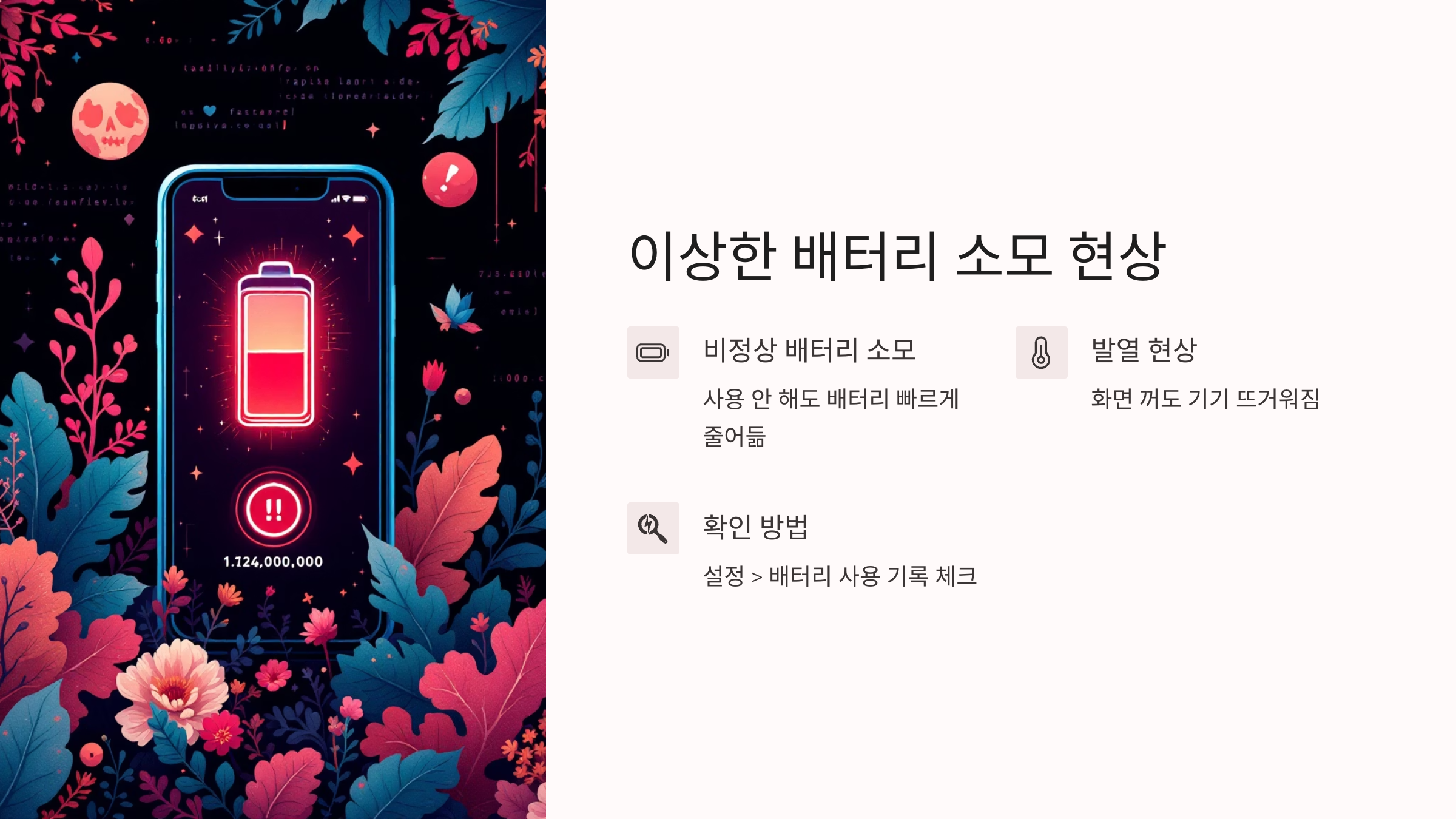 휴대폰을 거의 사용하지 않았는데도 배터리가 빠르게 소모된다면, 백그라운드에서 악성코드가 작동 중일 가능성이 있어요. 특히 화면을 꺼둔 상태에서도 발열이 심하다면 꼭 점검해봐야 합니다.