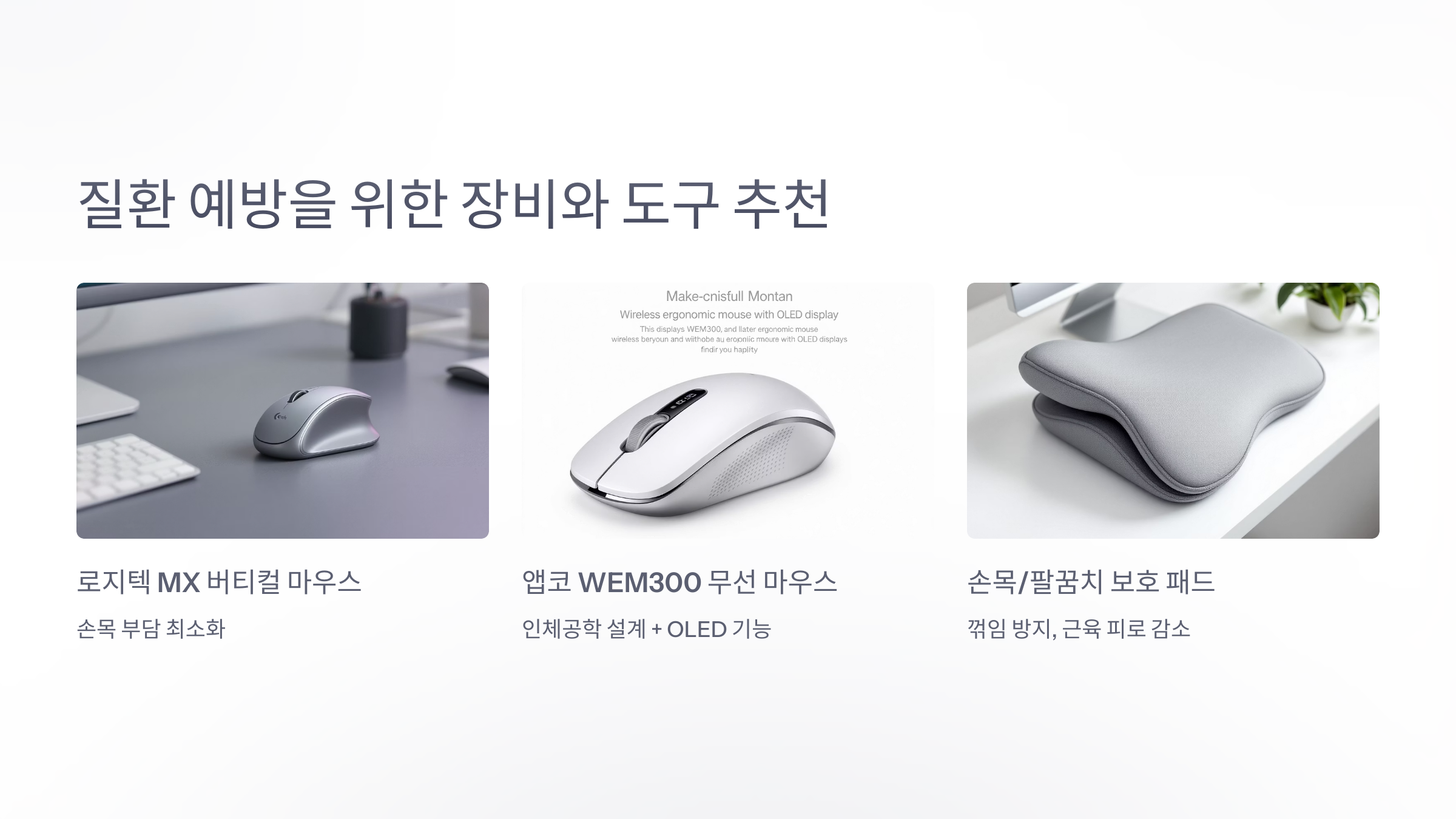 ✅ 특히 버티컬 마우스는 손목의 비틀림을 줄여줘서 근본적인 예방법이 될 수 있어요!