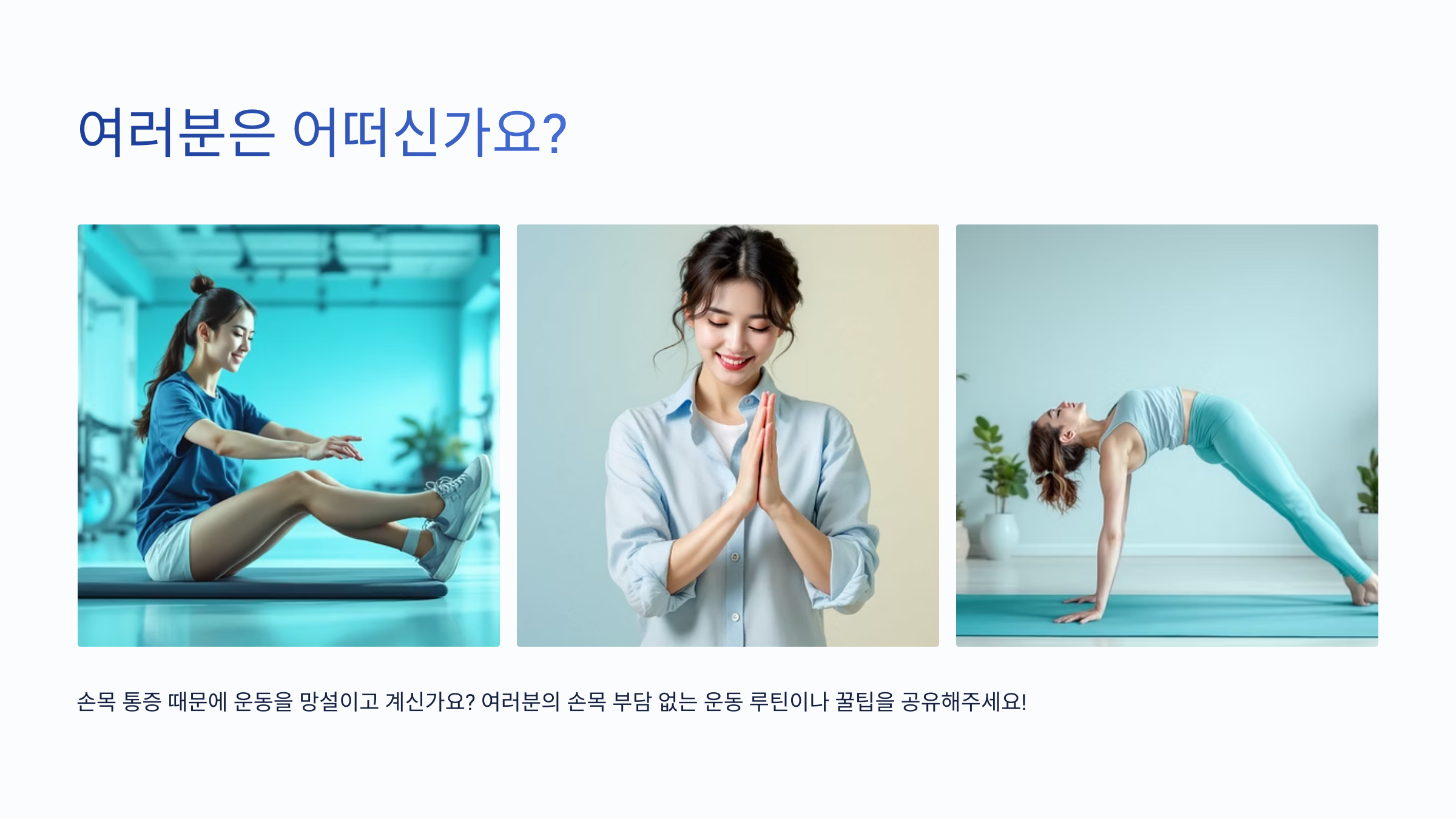 여러분이 해보신 손목 부담 없는 운동 루틴이나 꿀팁이 있다면 댓글로 공유해주세요!