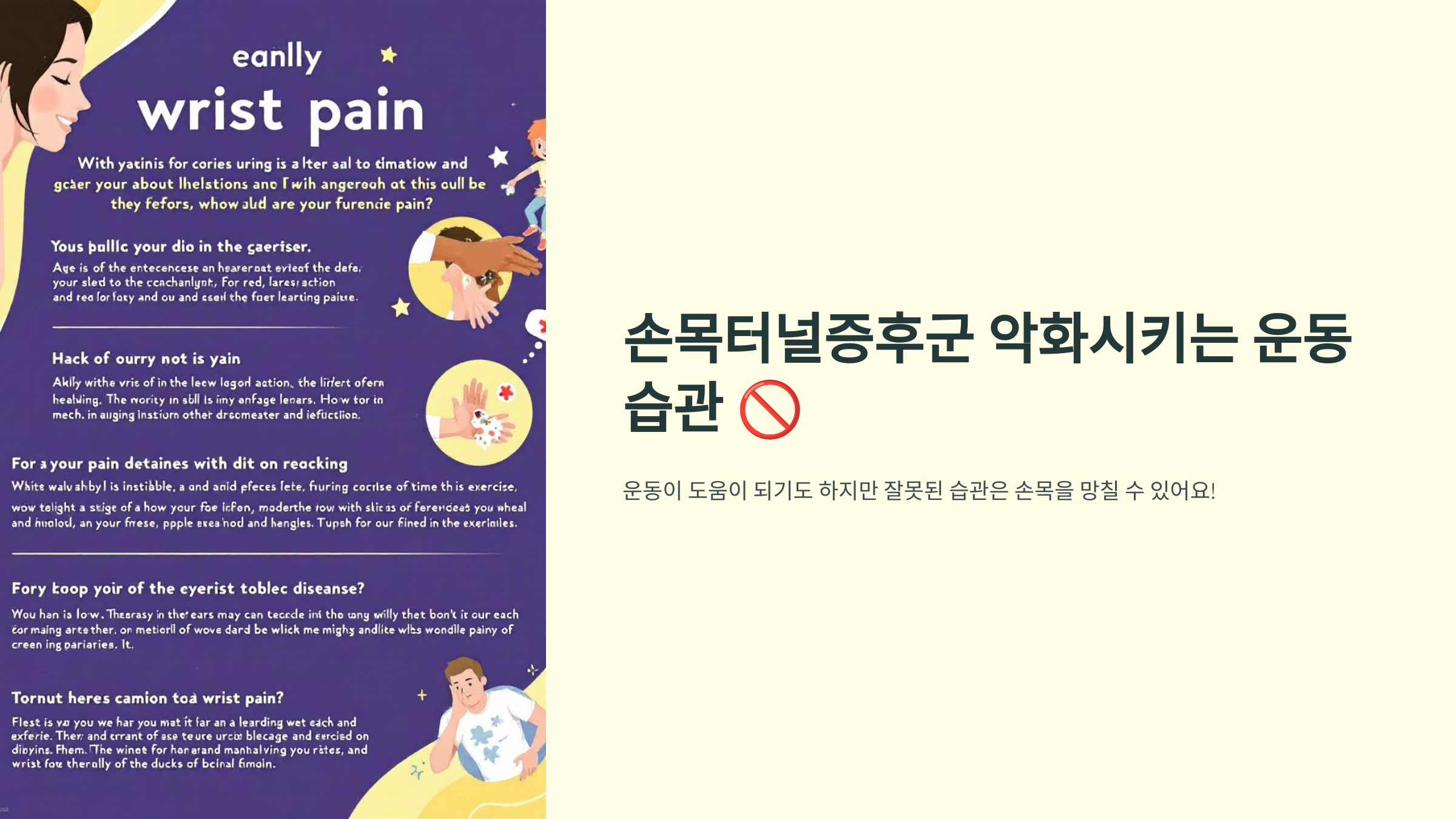 운동이 도움이 되기도 하지만… 잘못된 습관은 오히려 손목을 망칠 수 있어요! 손목터널증후군이 있다면 꼭 피해야 할 운동 습관들, 제가 직접 정리해봤습니다.