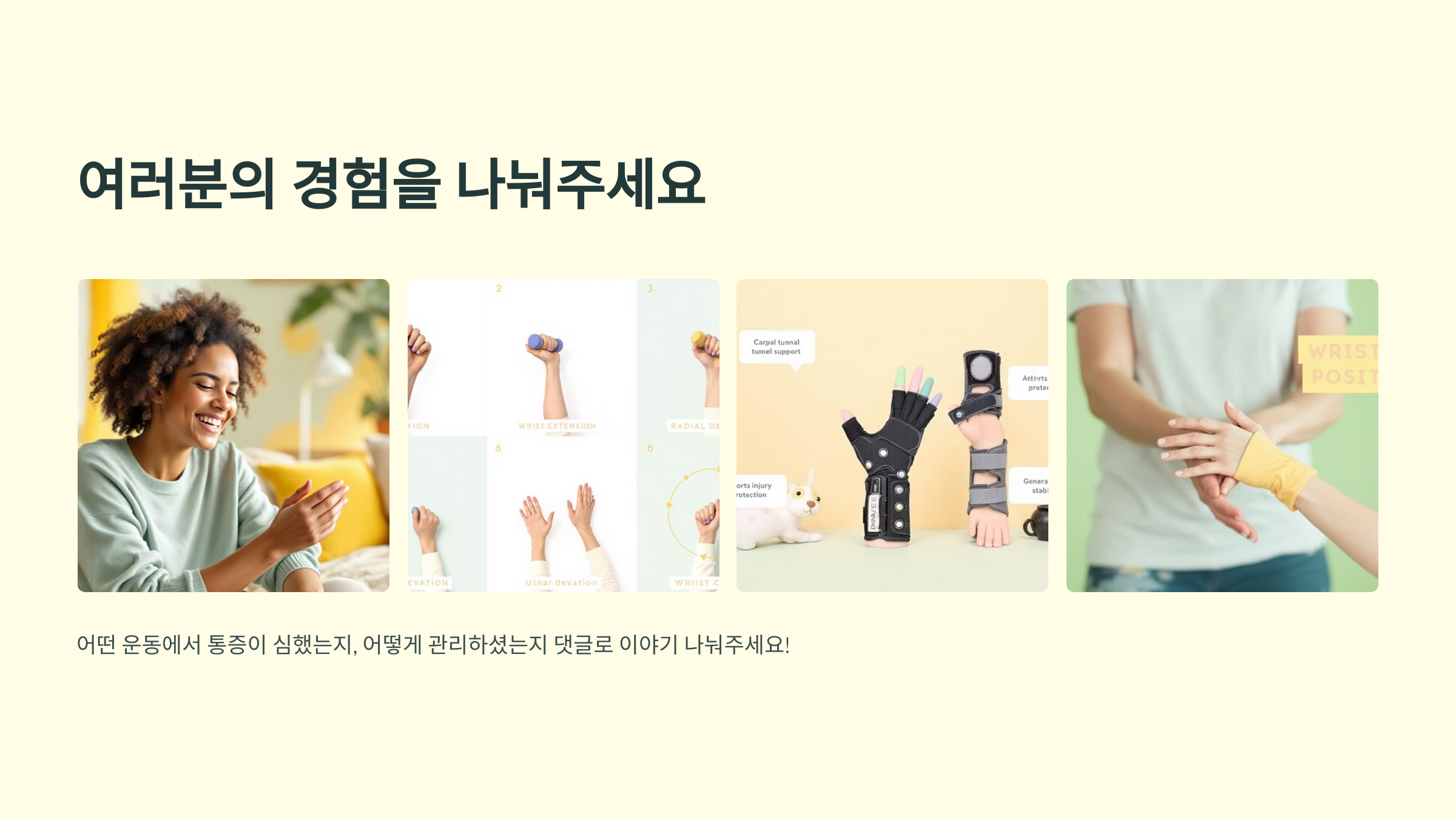 저도 무심코 넘겼다가 나중에 고생했거든요. 지금이라도 잘못된 운동 습관은 점검하고, 손목에게도 ‘쉴 권리’를 주세요.