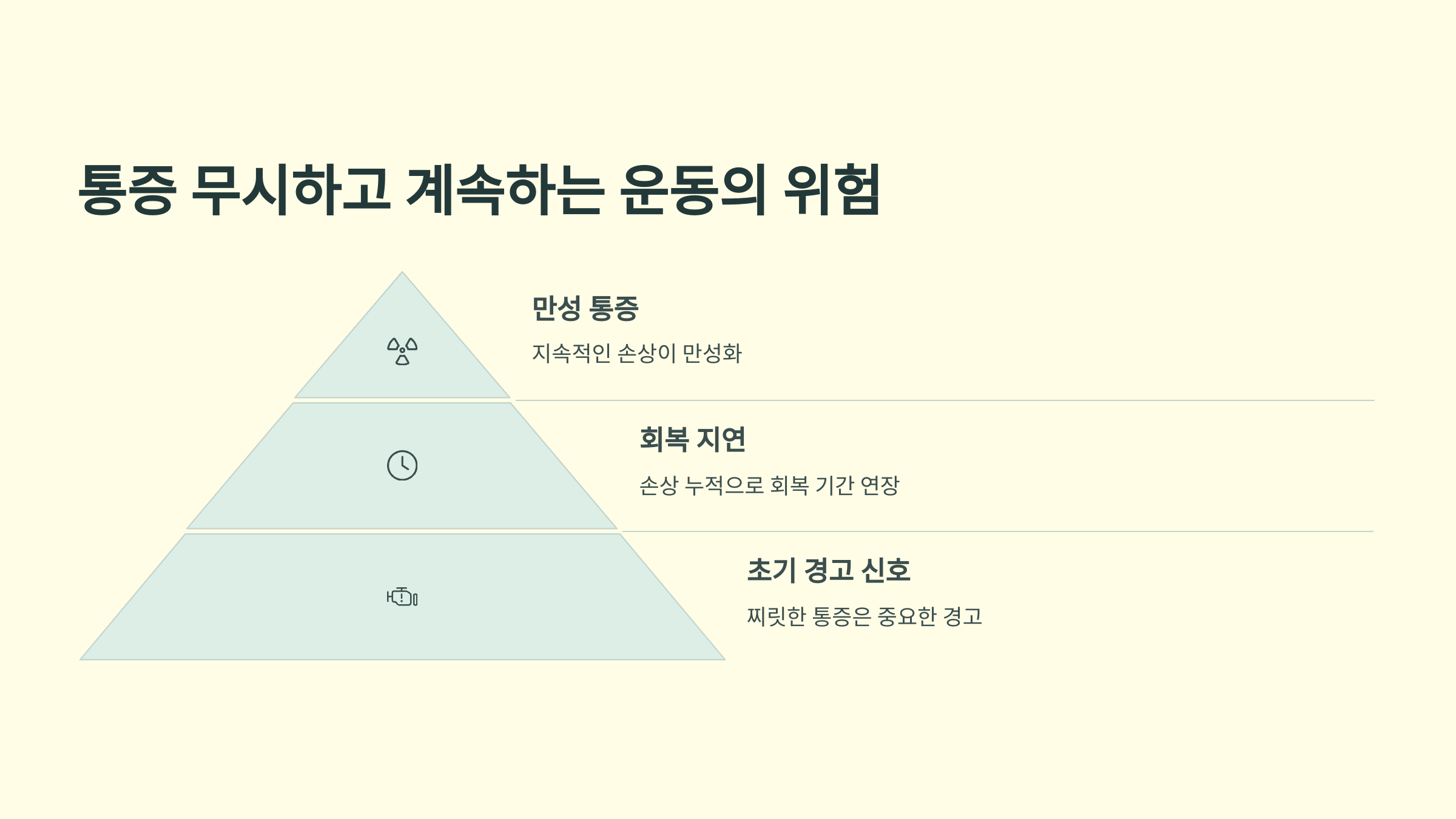 아프다면 일단 중단하세요. 통증이 있는 상태에서 무리하면 손상이 악화됩니다.
