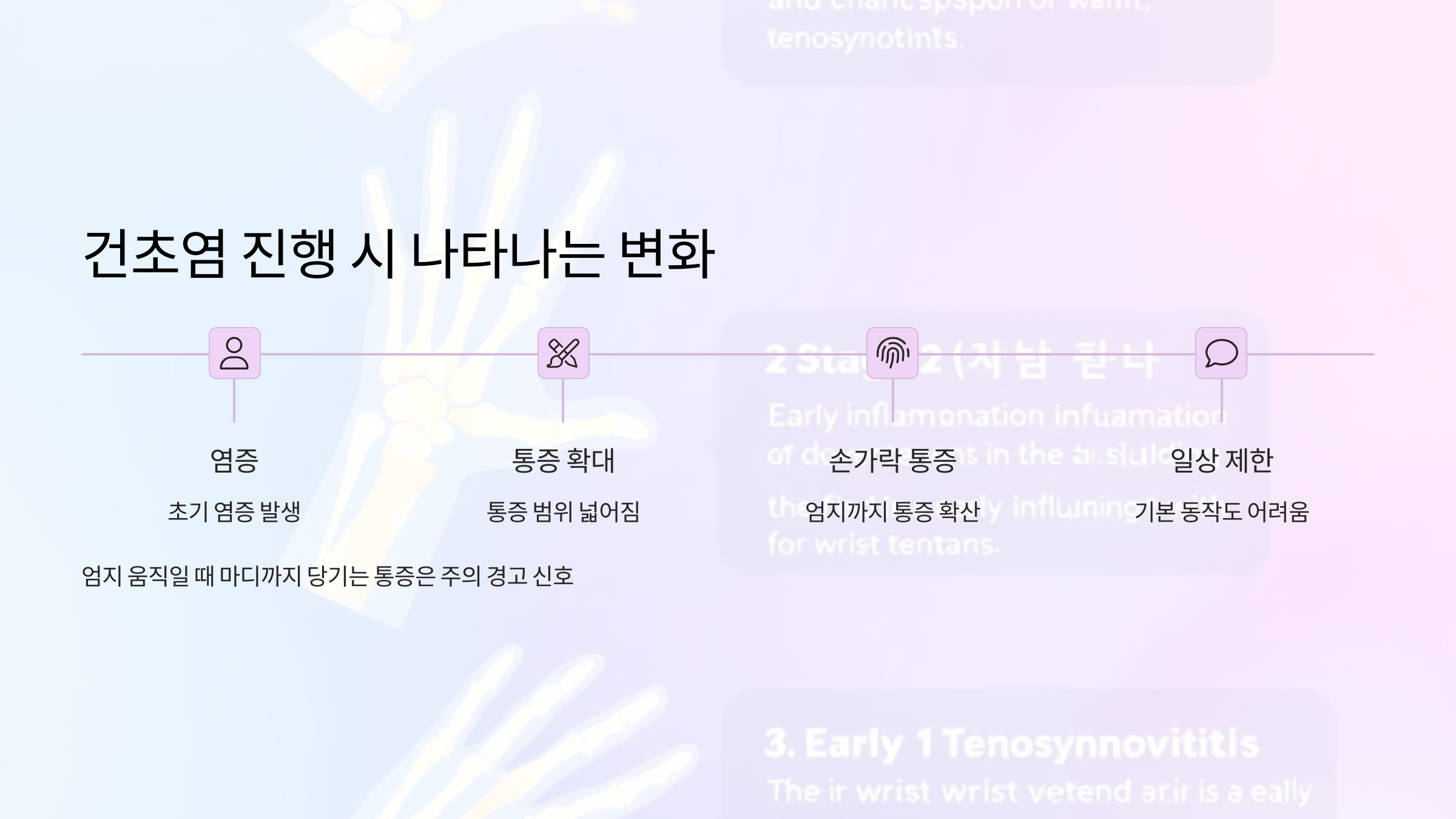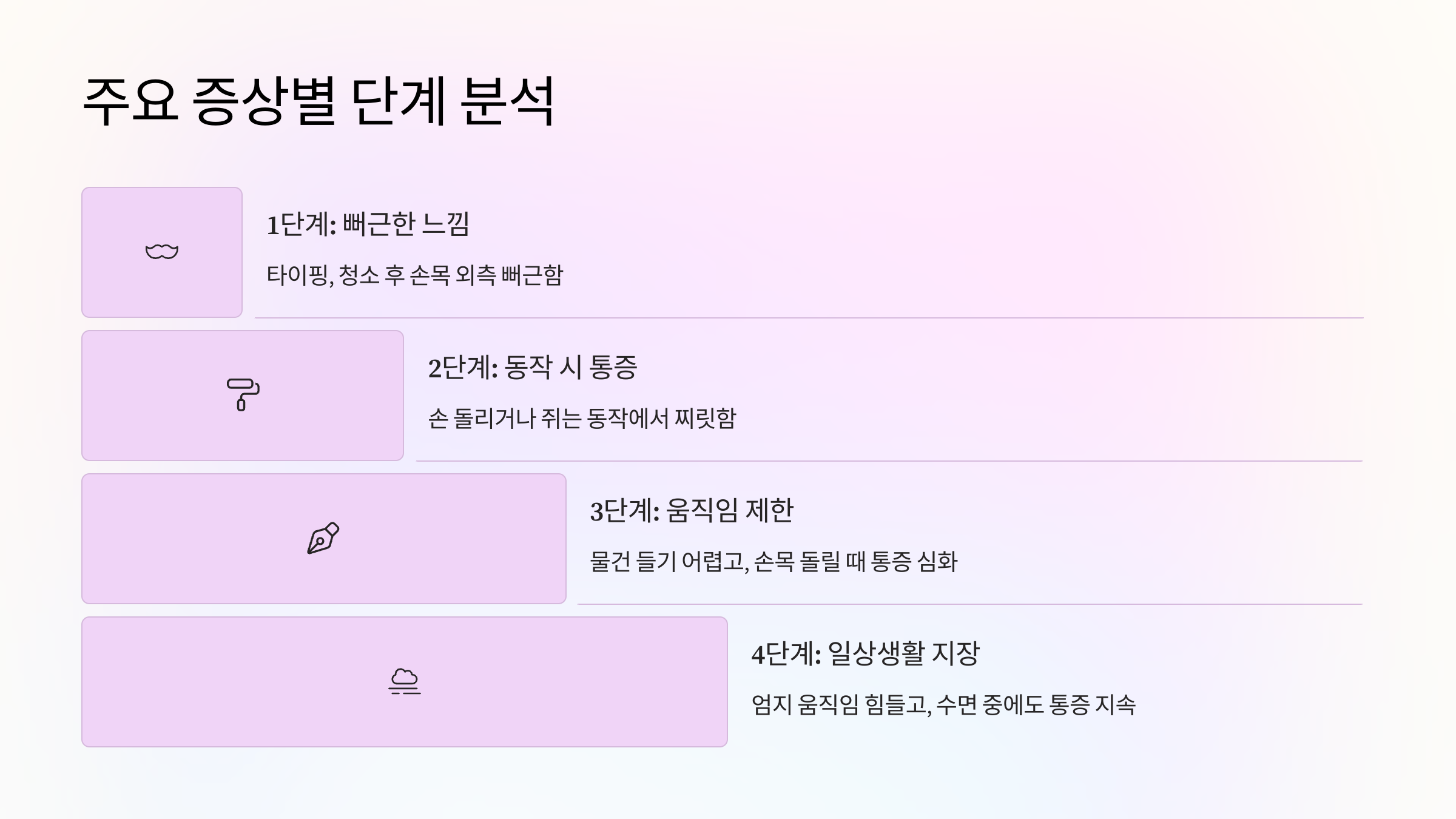 ✅ 염증 → ✅ 통증 확대 → ✅ 손가락 통증 동반 → ✅ 일상 제한