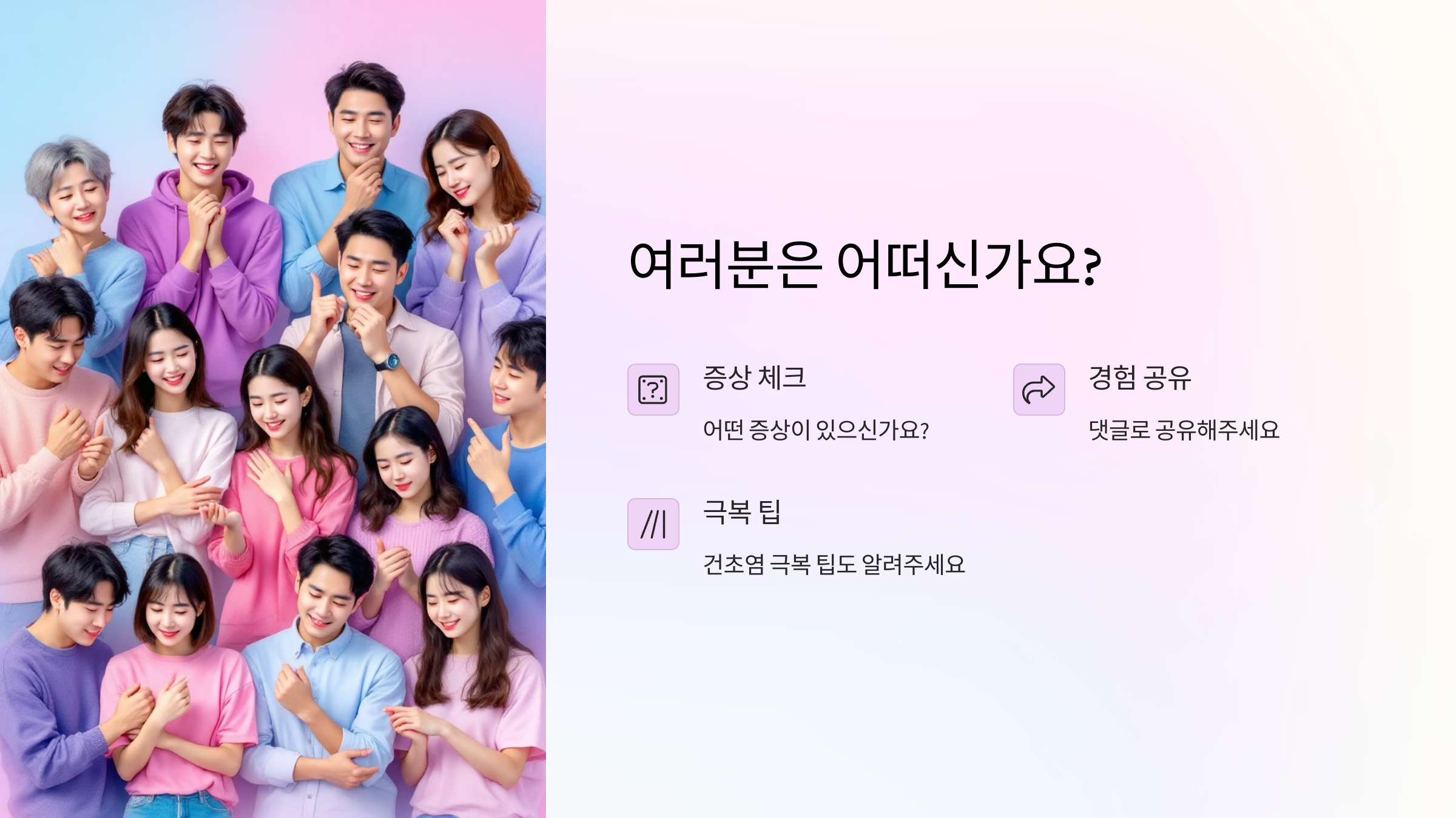 여러분의 증상은 어디에 해당되셨는지 댓글로 공유해주세요.