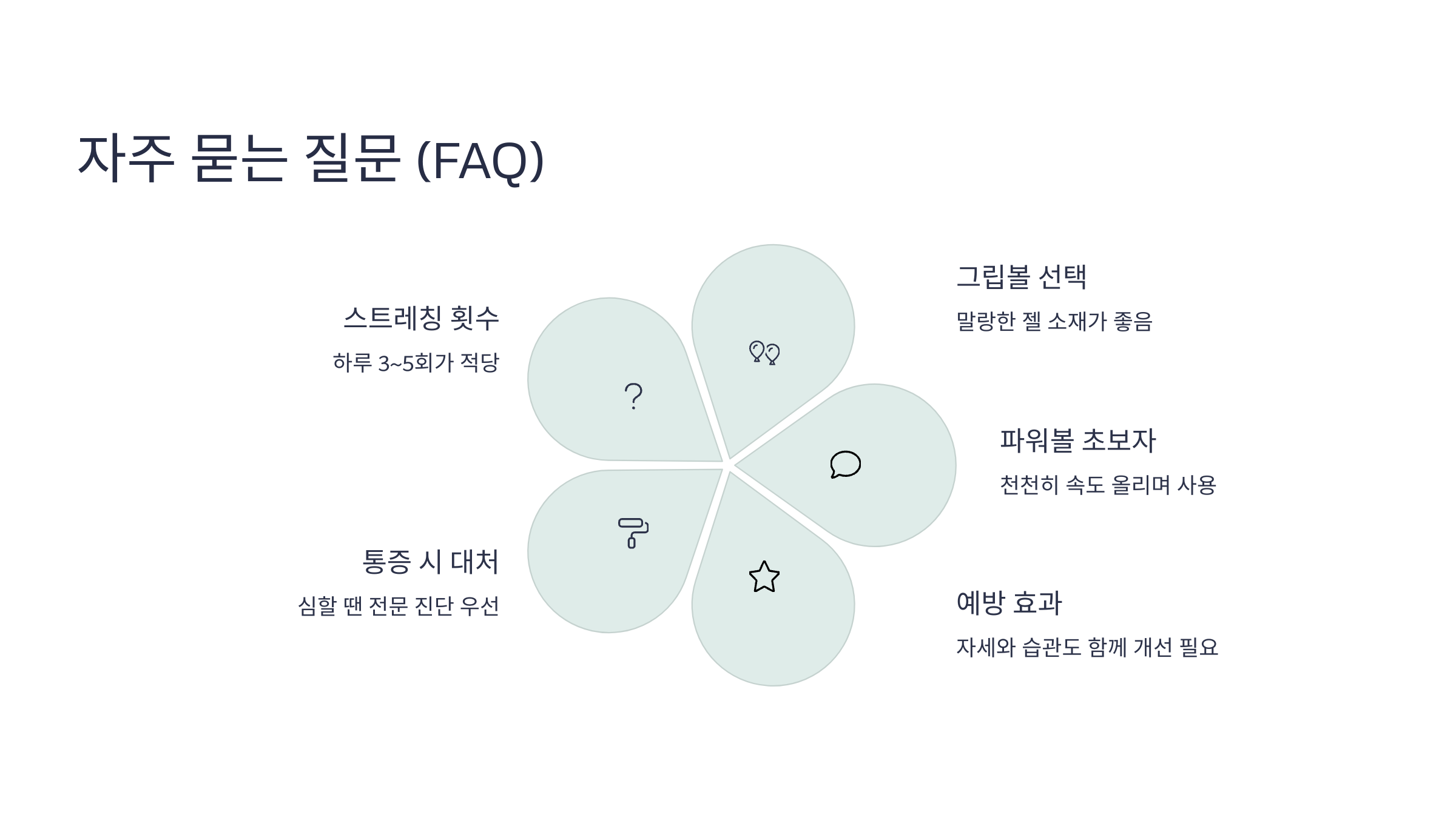 | 자기 전 | 가벼운 마사지와 손등 밀기 스트레칭 (3분) |
