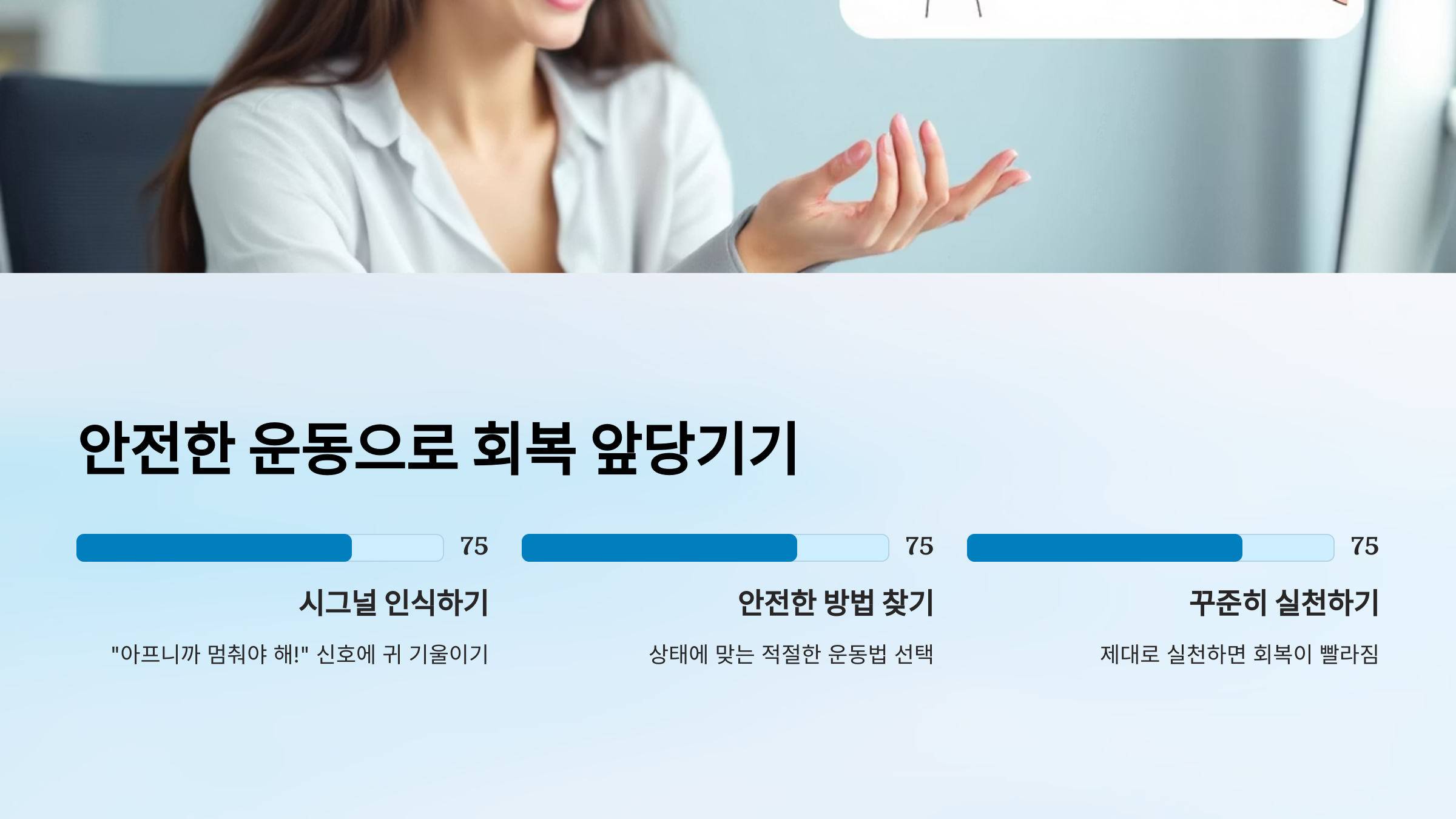 운동은 보조적인 수단일 뿐, 의학적인 접근이 우선입니다. 무리하지 마세요!