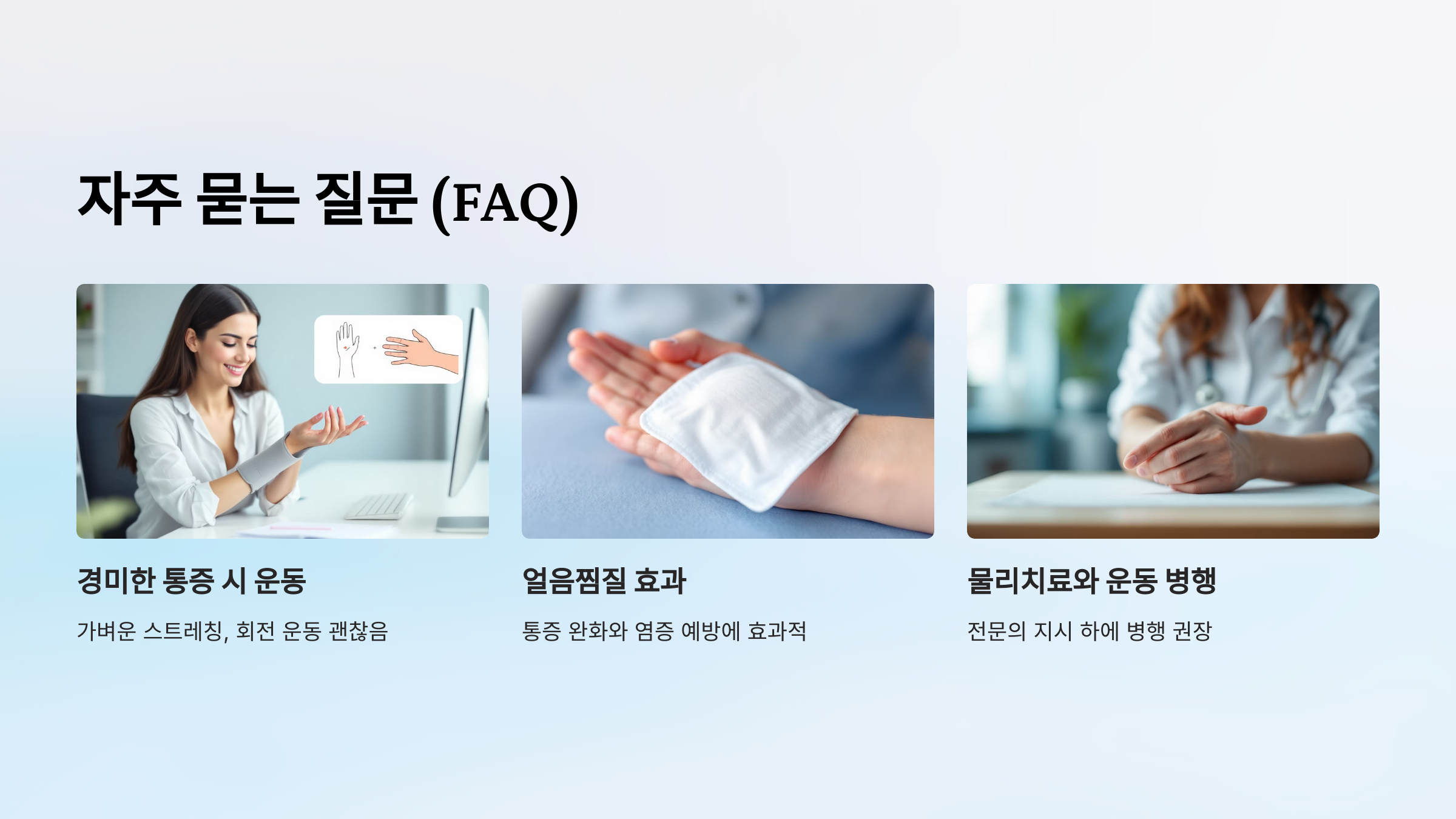 부담 없는 손가락 스트레칭이나 가벼운 회전 운동은 괜찮습니다. 단, 통증이 심해지면 즉시 중단하세요!