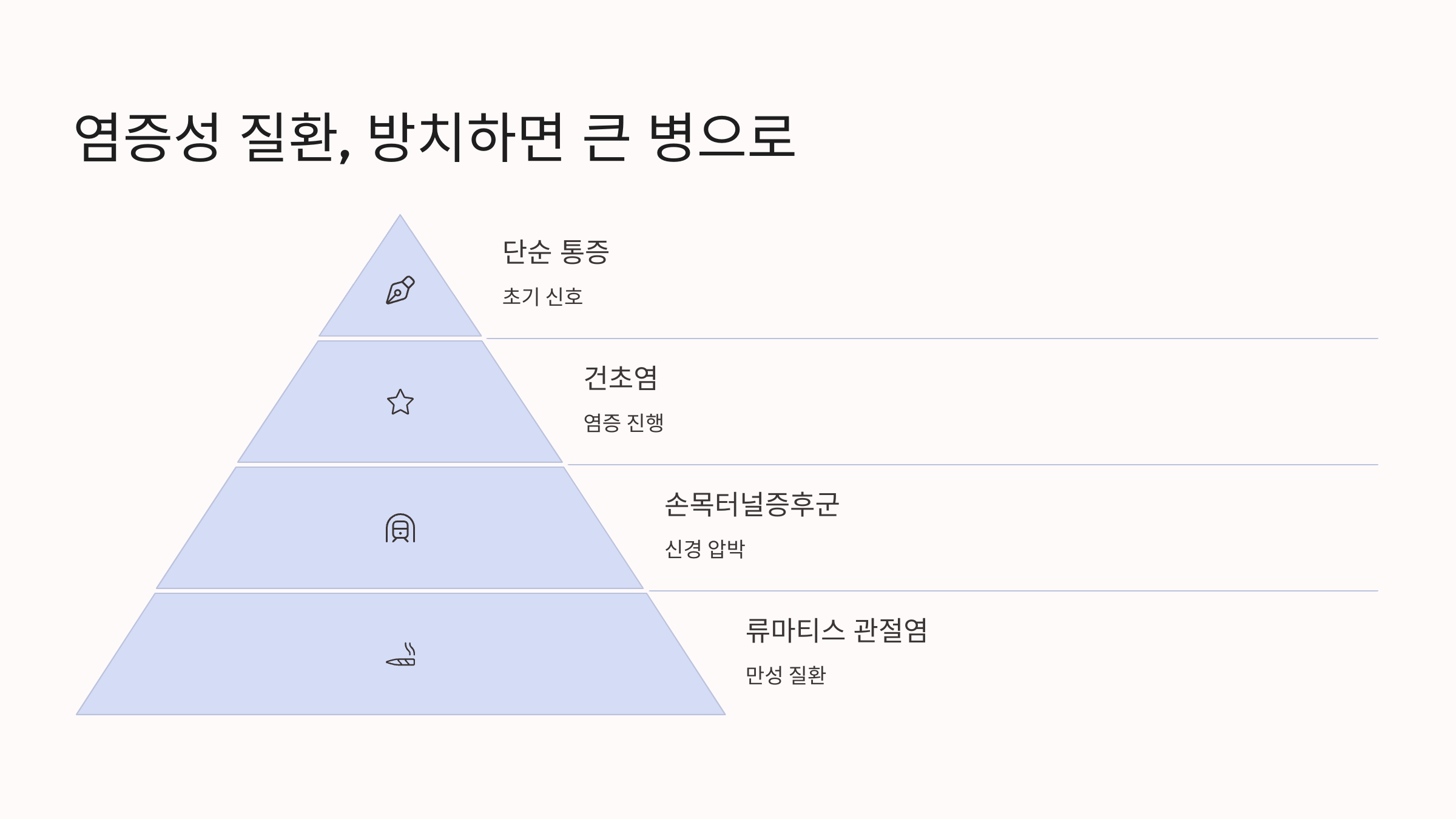 대표적으로는 손목터널증후군, 건초염, 류마티스 관절염 같은 질환이 있죠.