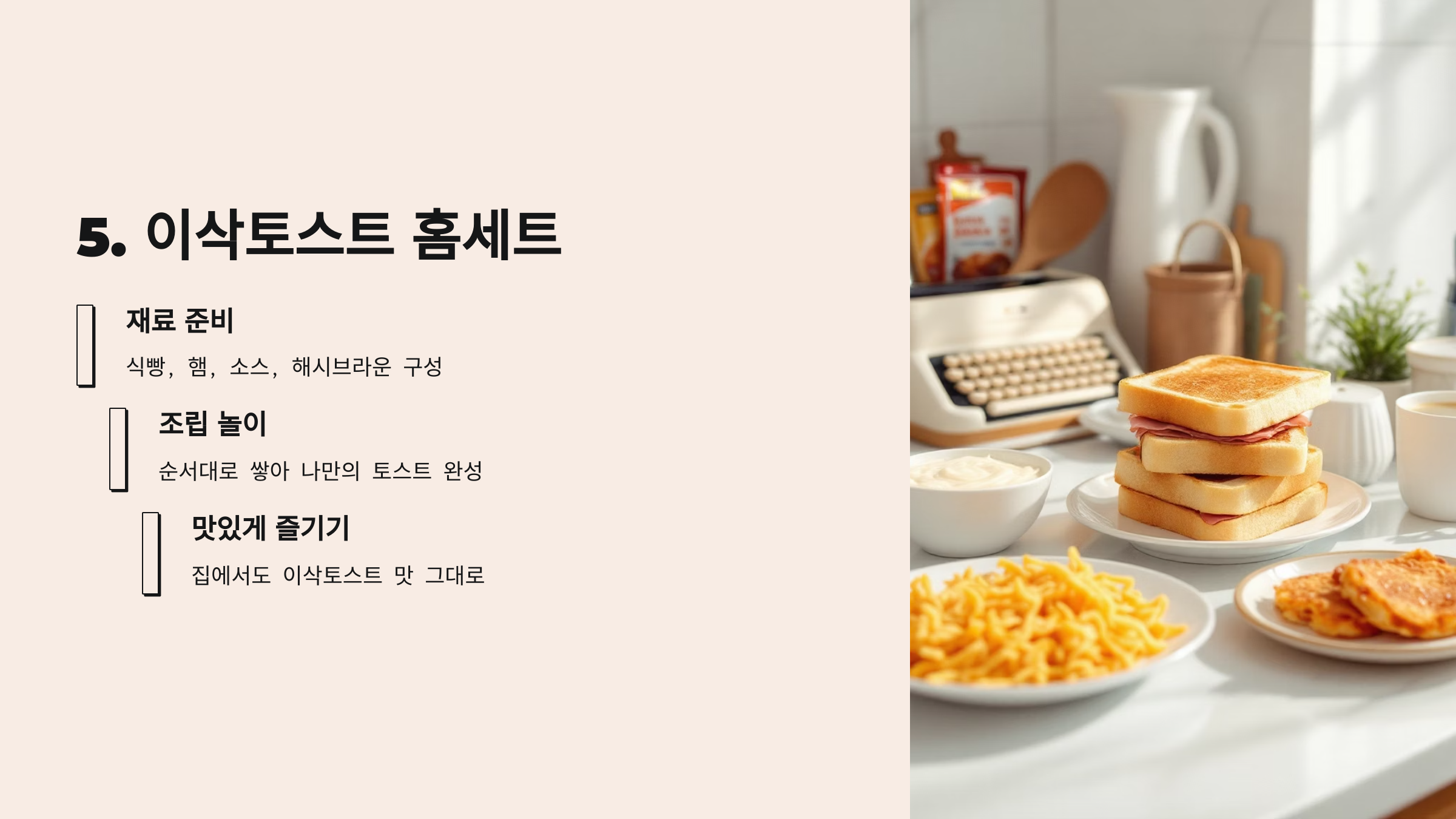 식빵+햄+소스+해시브라운 구성으로 조립 놀이하듯 만들 수 있어 재밌고 맛있어요.