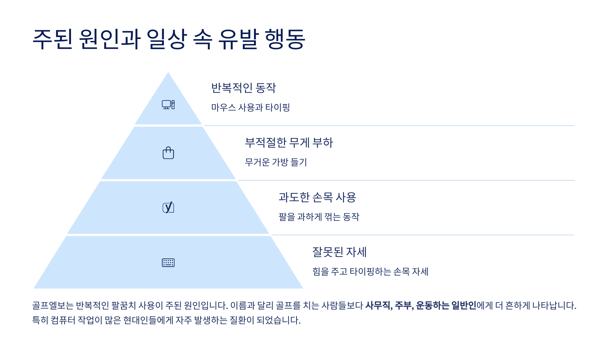 골프 치는 분들만 걸리는 게 아니고, 요즘은 사무직, 주부, 운동하는 일반인에게 더 흔해요.