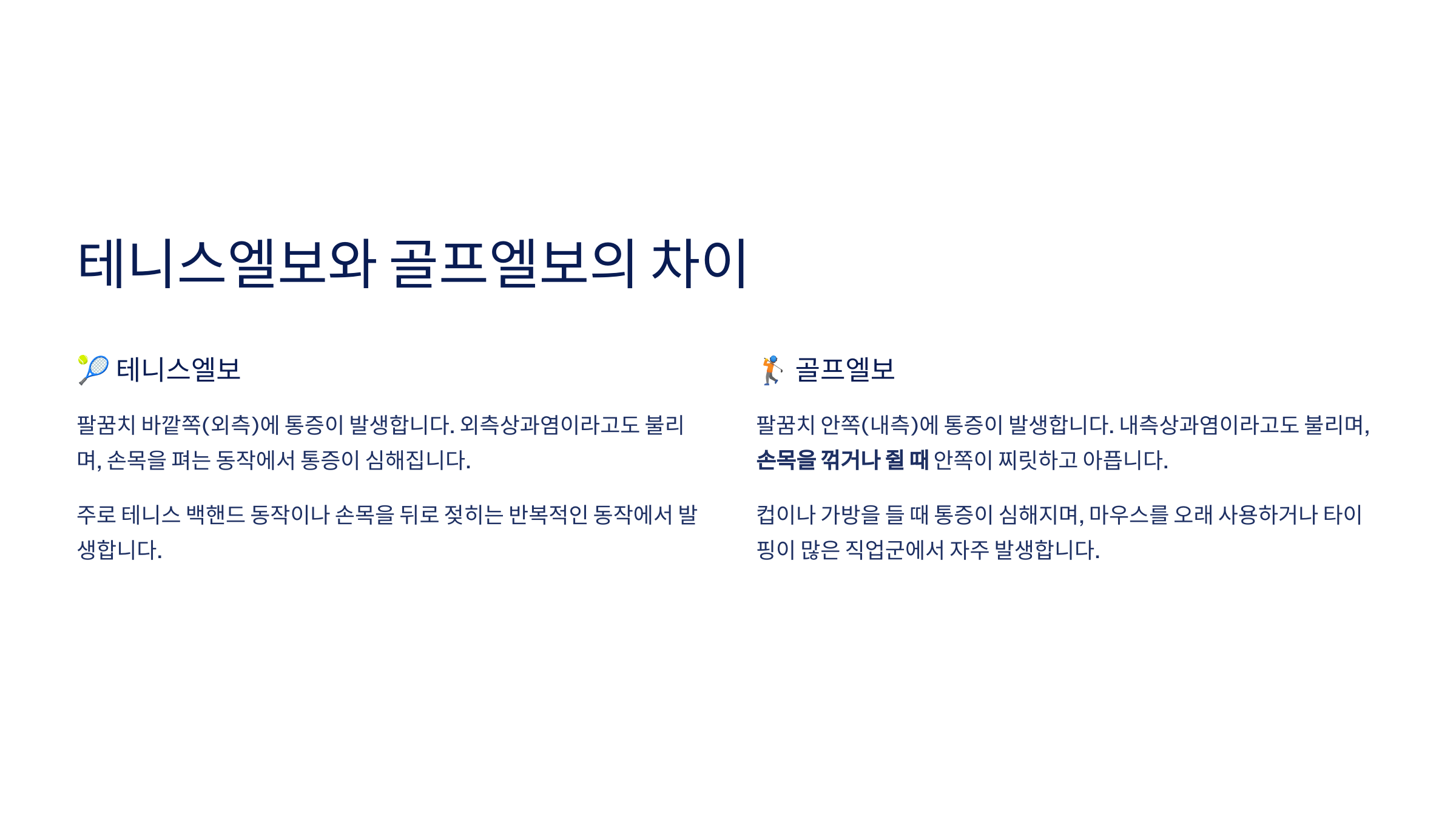 테니스엘보와 골프엘보의 차이