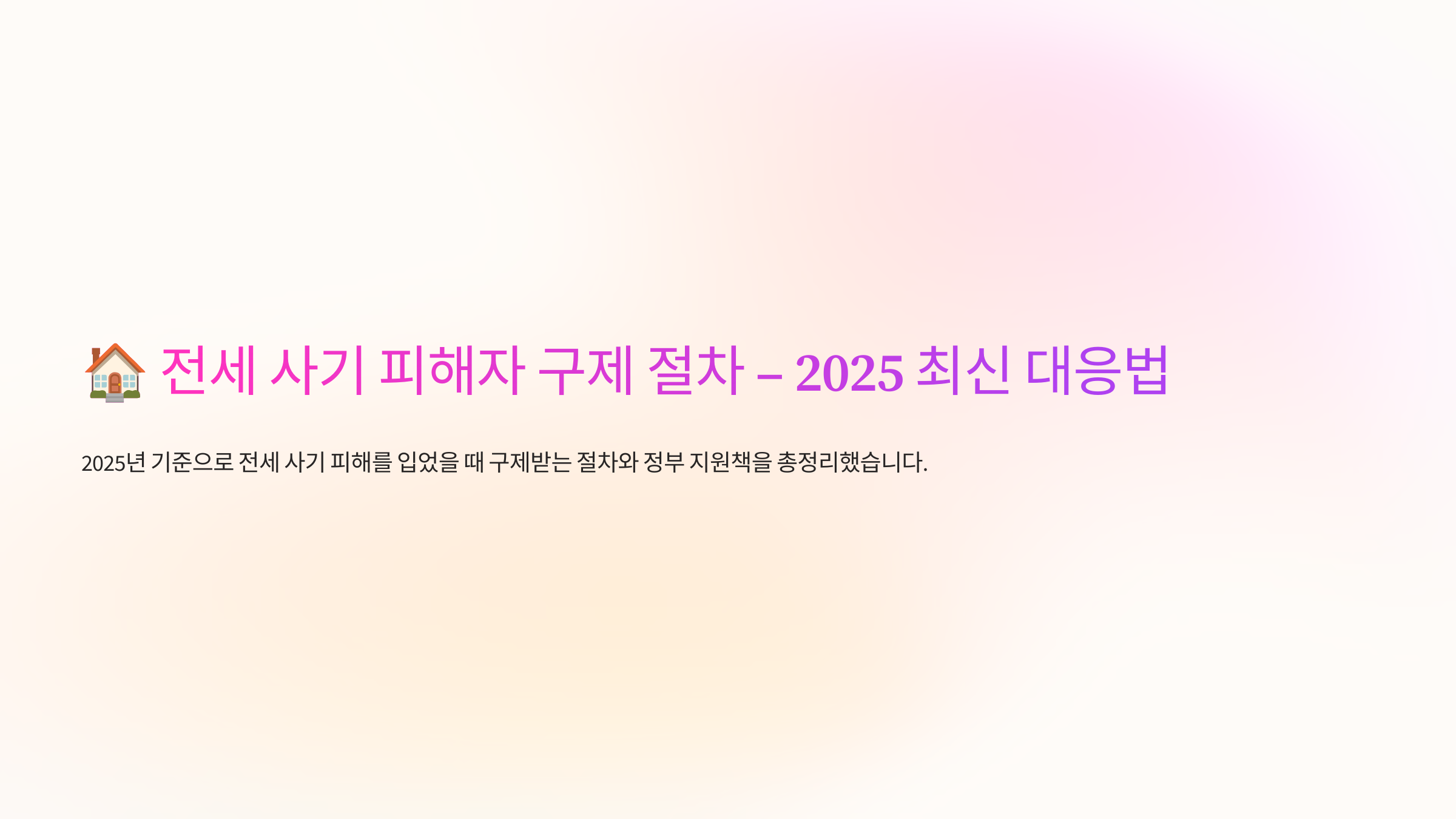 2025년 기준으로 전세 사기 피해를 입었을 때 구제받는 절차와 정부 지원책을 총정리했습니다.