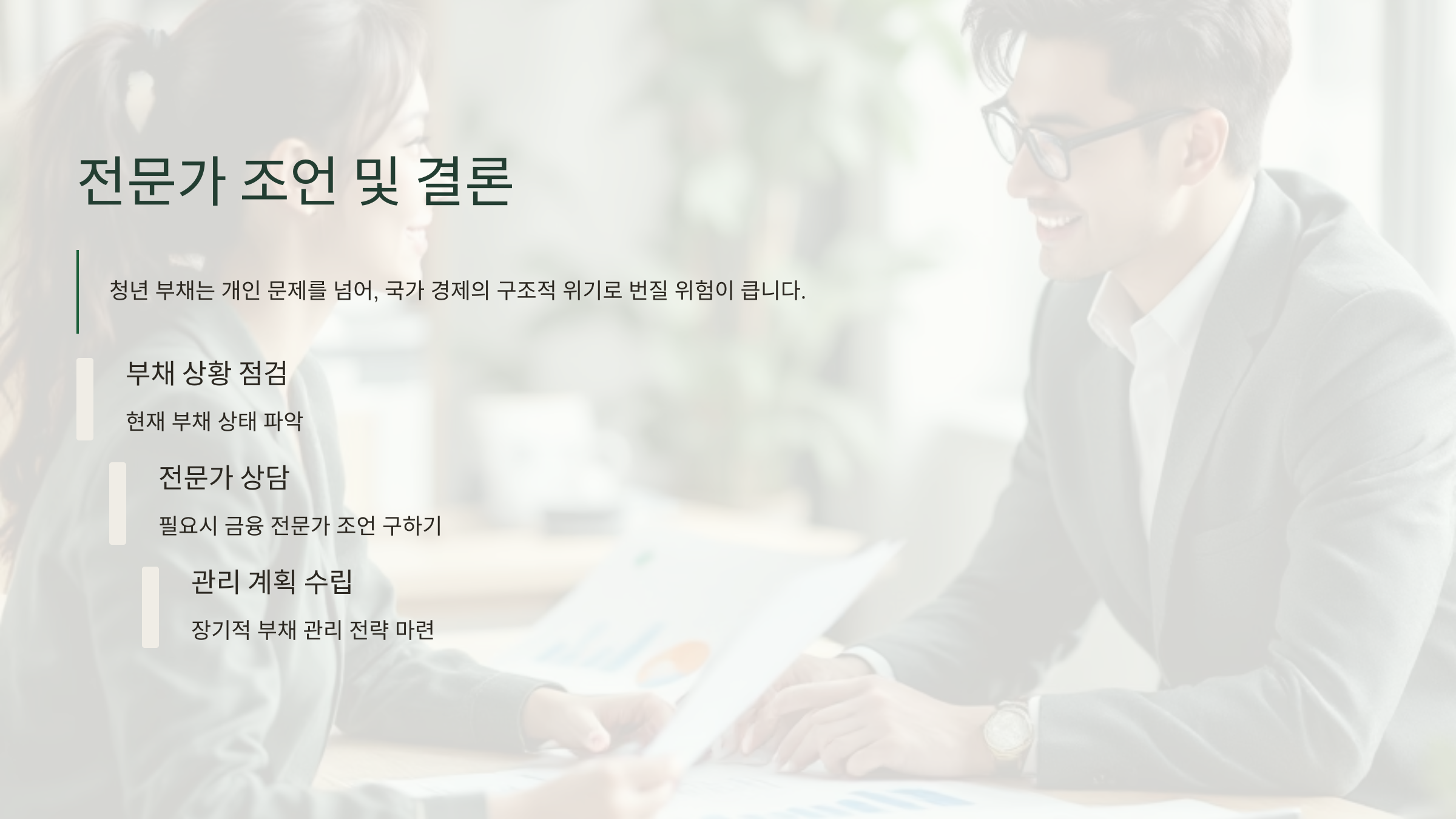 "청년 부채는 개인 문제를 넘어, 국가 경제의 구조적 위기로 번질 위험이 큽니다.