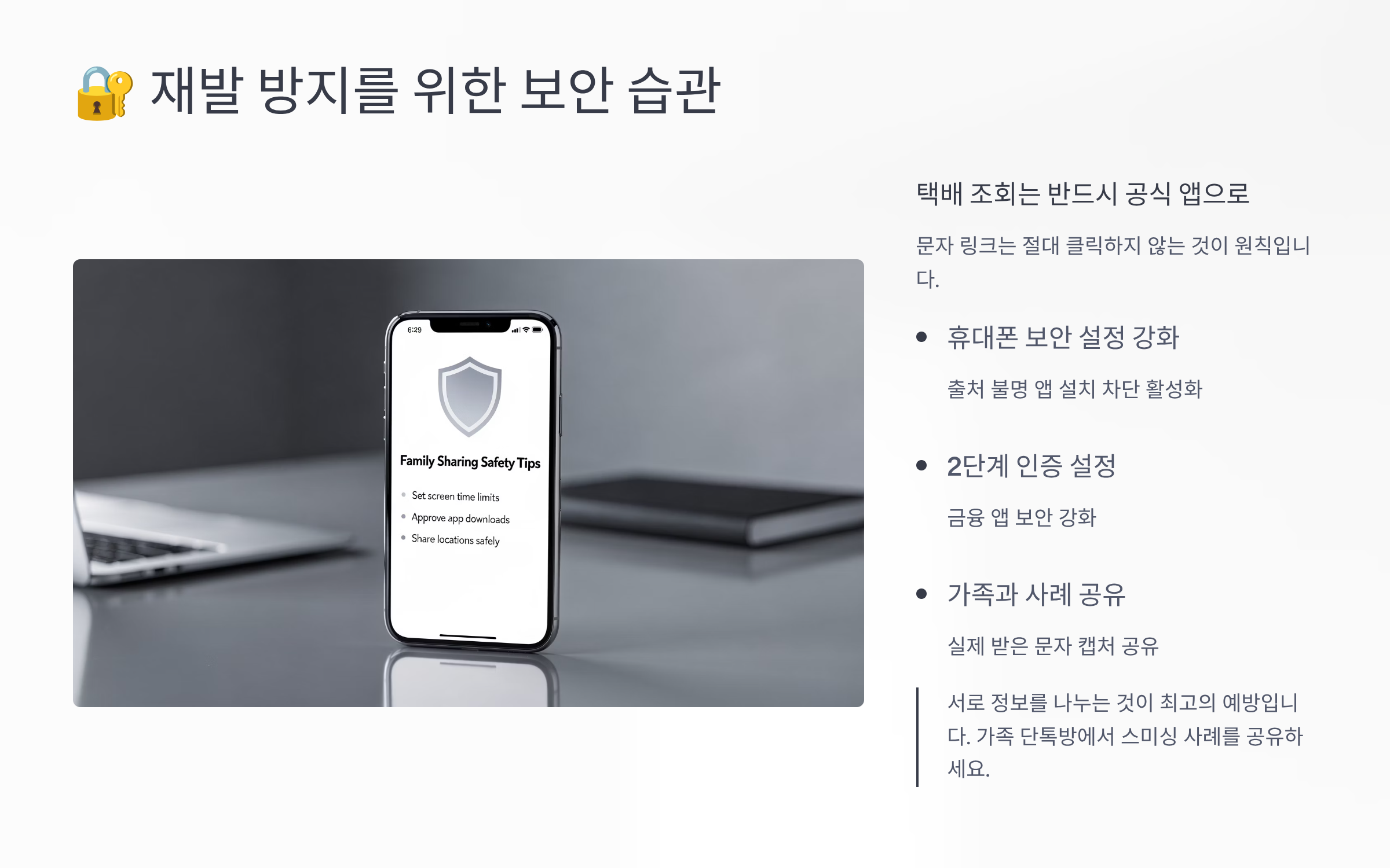 저는 가족 단톡방에 실제 받은 문자 캡처를 공유했습니다. 서로 정보를 나누는 것이 최고의 예방입니다.