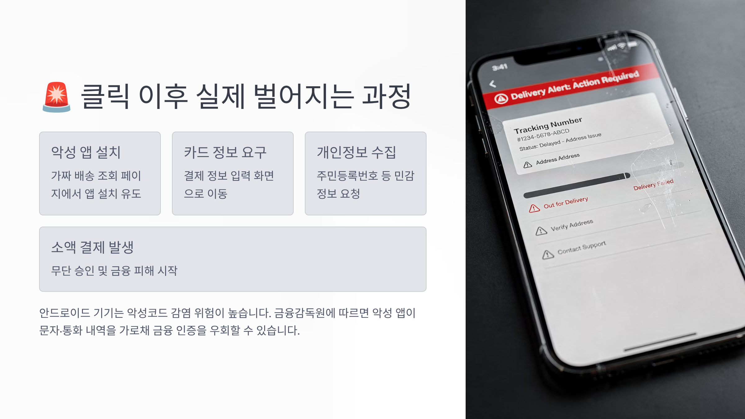 실제 피해 사례를 보면 공통점이 있습니다. 피해자는 “배송 문제 해결”이라는 생각에 빠르게 행동합니다.