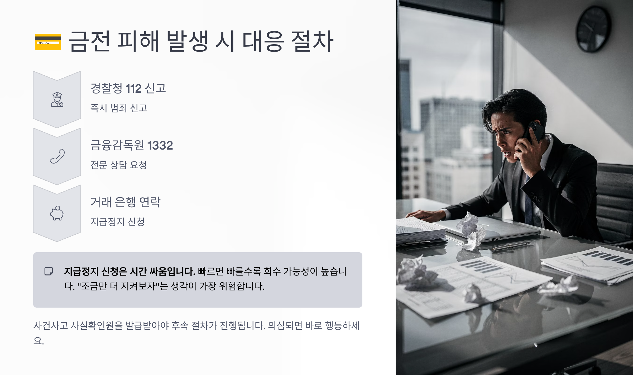 이미 금전 피해가 발생했다면 즉시 조치가 필요합니다.