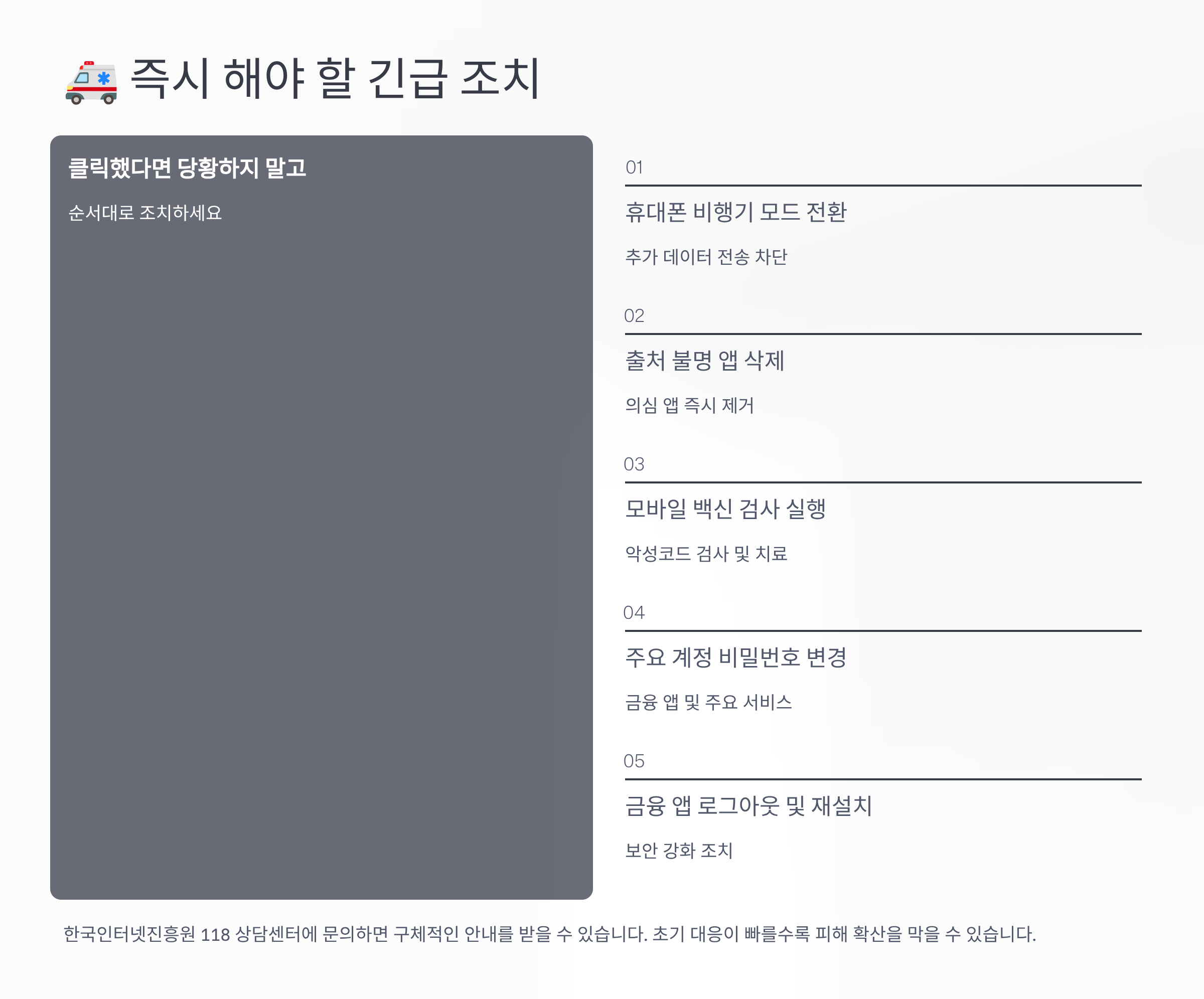 한국인터넷진흥원 118 상담센터에 문의하면 구체적인 안내를 받을 수 있습니다. 초기 대응이 빠를수록 피해 확산을 막을 수 있습니다.