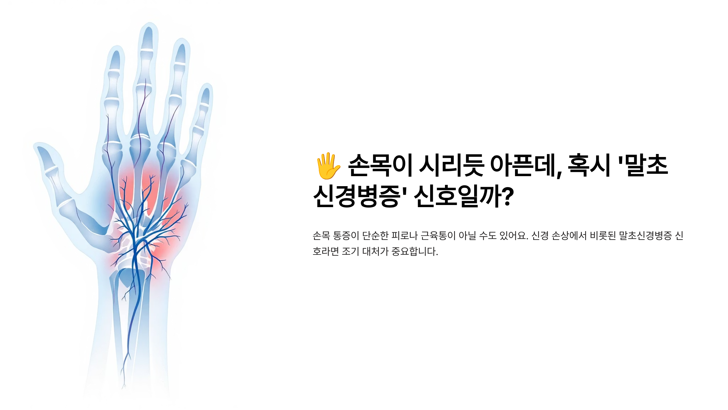 손목 통증이 단순한 피로나 근육통이 아닐 수도 있어요. 신경 손상에서 비롯된 말초신경병증 신호라면 조기 대처가 중요합니다.