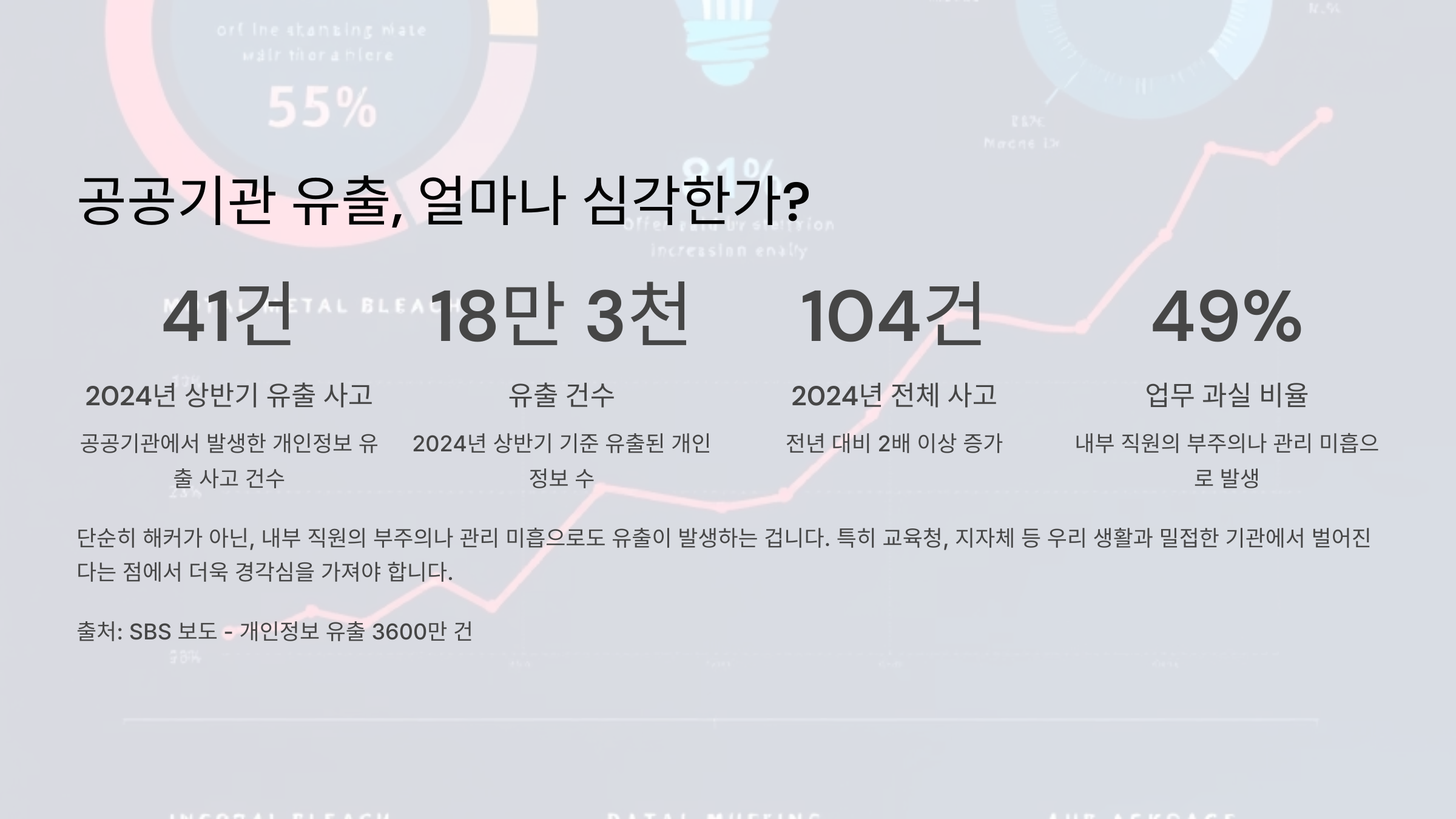요즘 뉴스에서 '개인정보 유출'이라는 단어, 하루가 멀다 하고 들려옵니다. 단순히 기업의 해킹 사고만이 아니라, 공공기관에서도 유출이 증가하고 있다는 점이 더 무섭죠.