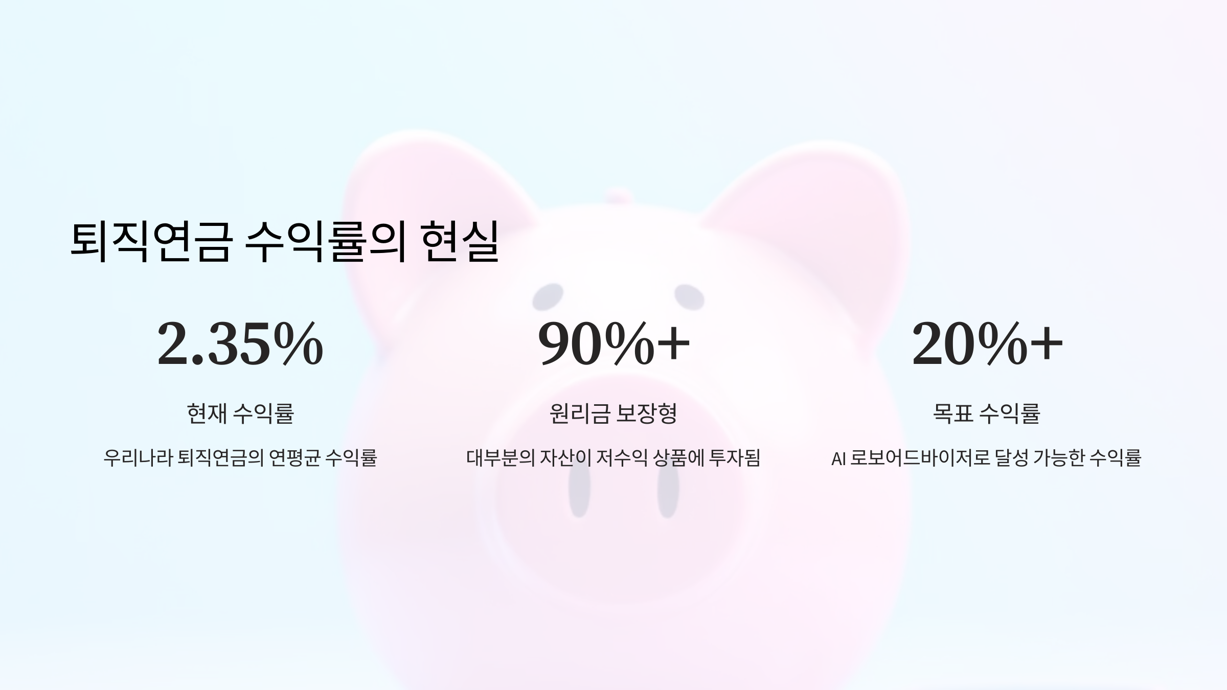 "은행 이자 수준의 퇴직연금 수익률, 이제 AI로 20% 이상 달성 가능합니다!"