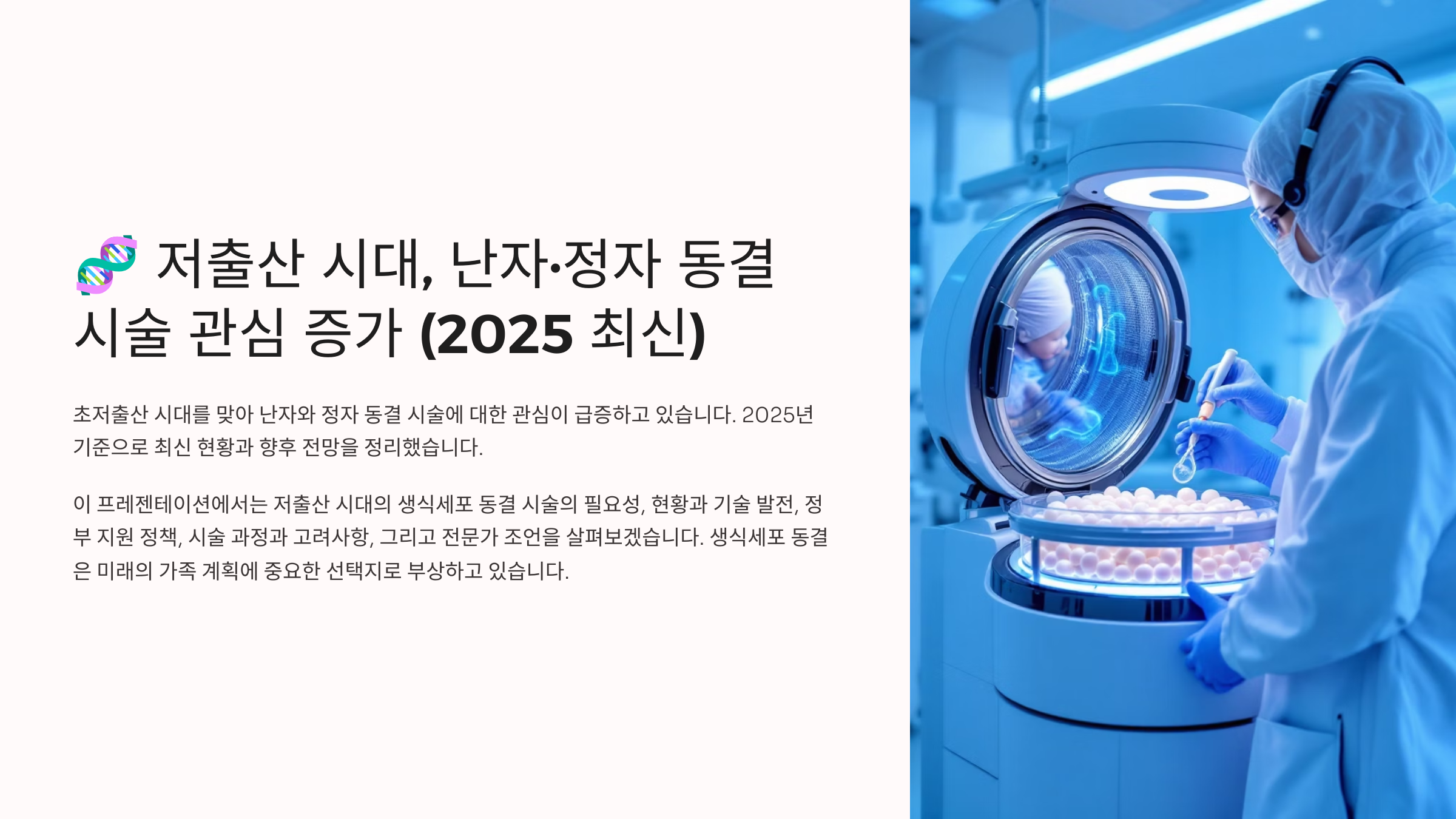 초저출산 시대를 맞아 난자와 정자 동결 시술에 대한 관심이 급증하고 있습니다. 2025년 기준으로 최신 현황과 향후 전망을 정리했습니다.