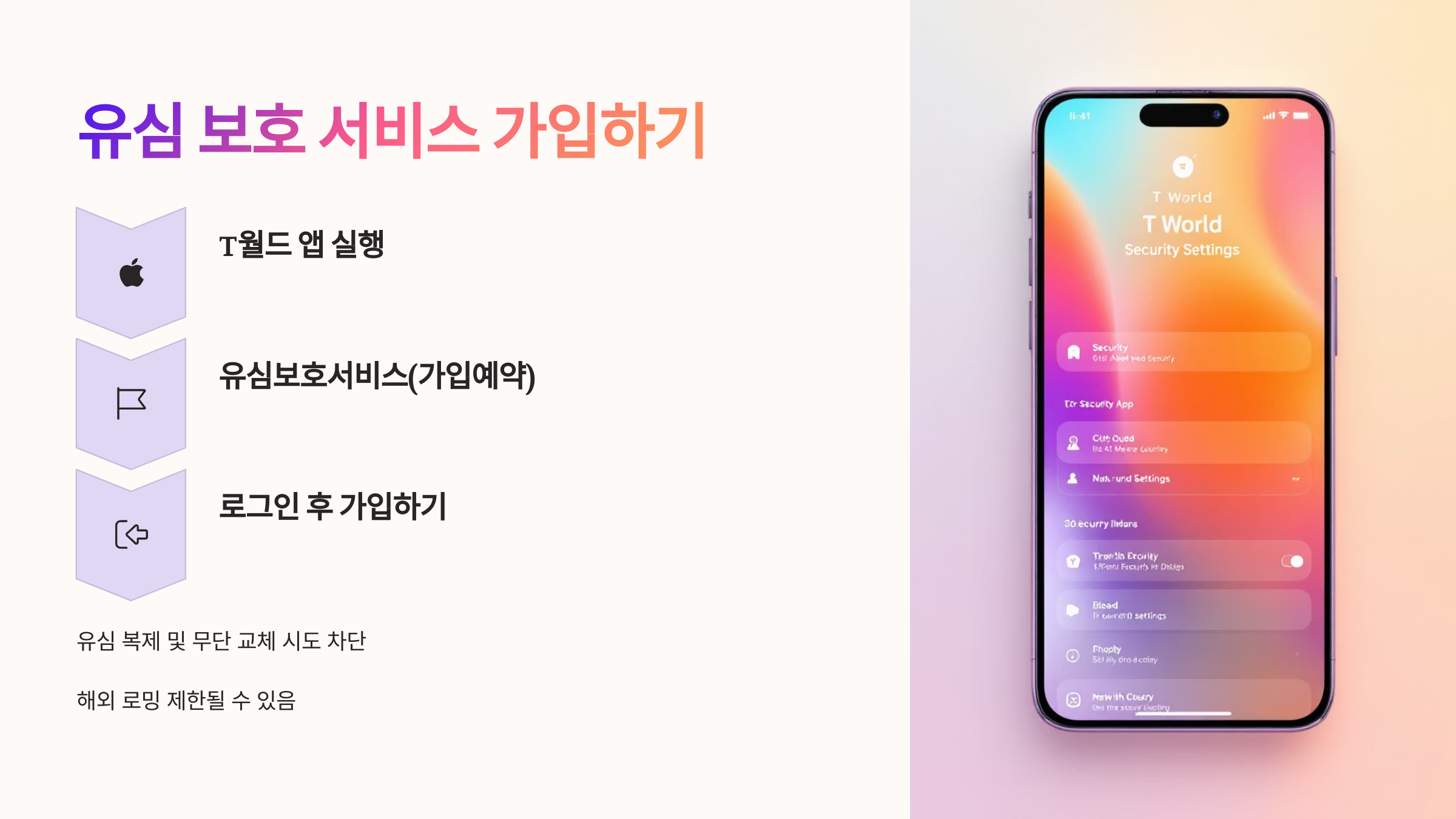 | 유심 보호 서비스 | 유심 복제 및 교체 방지 | T월드 앱 가입 |