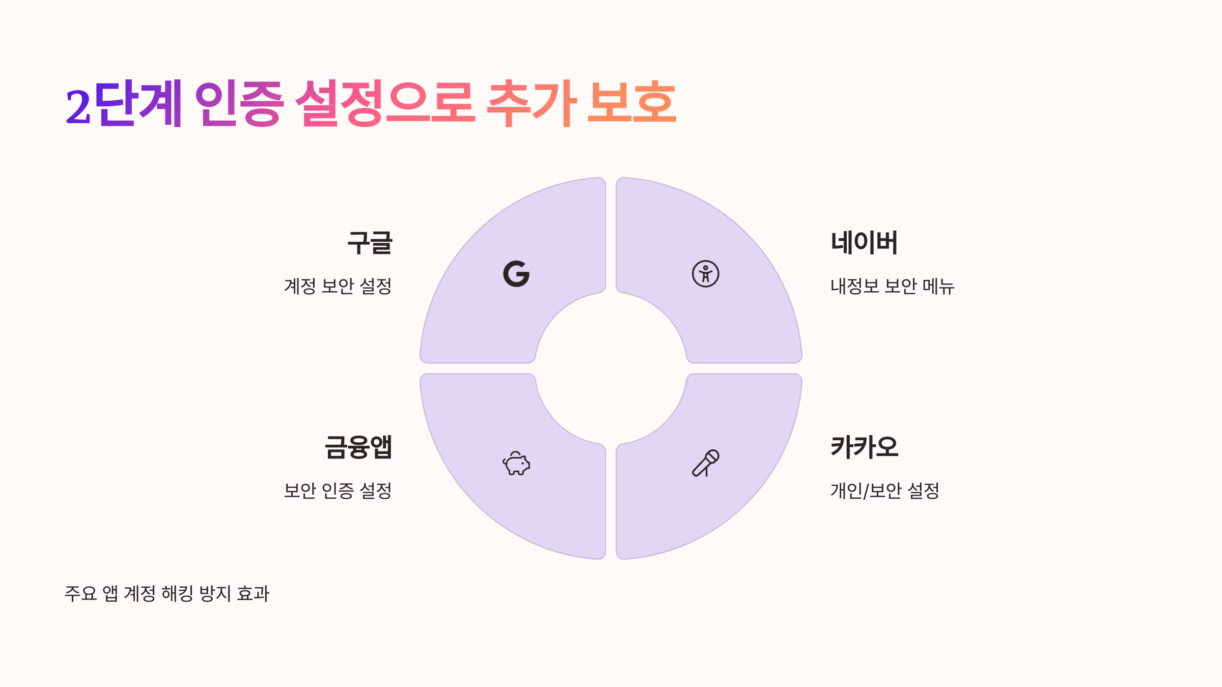 구글, 네이버, 카카오 등 주요 앱에서 설정하면 계정 해킹 방지 효과가 큽니다.
