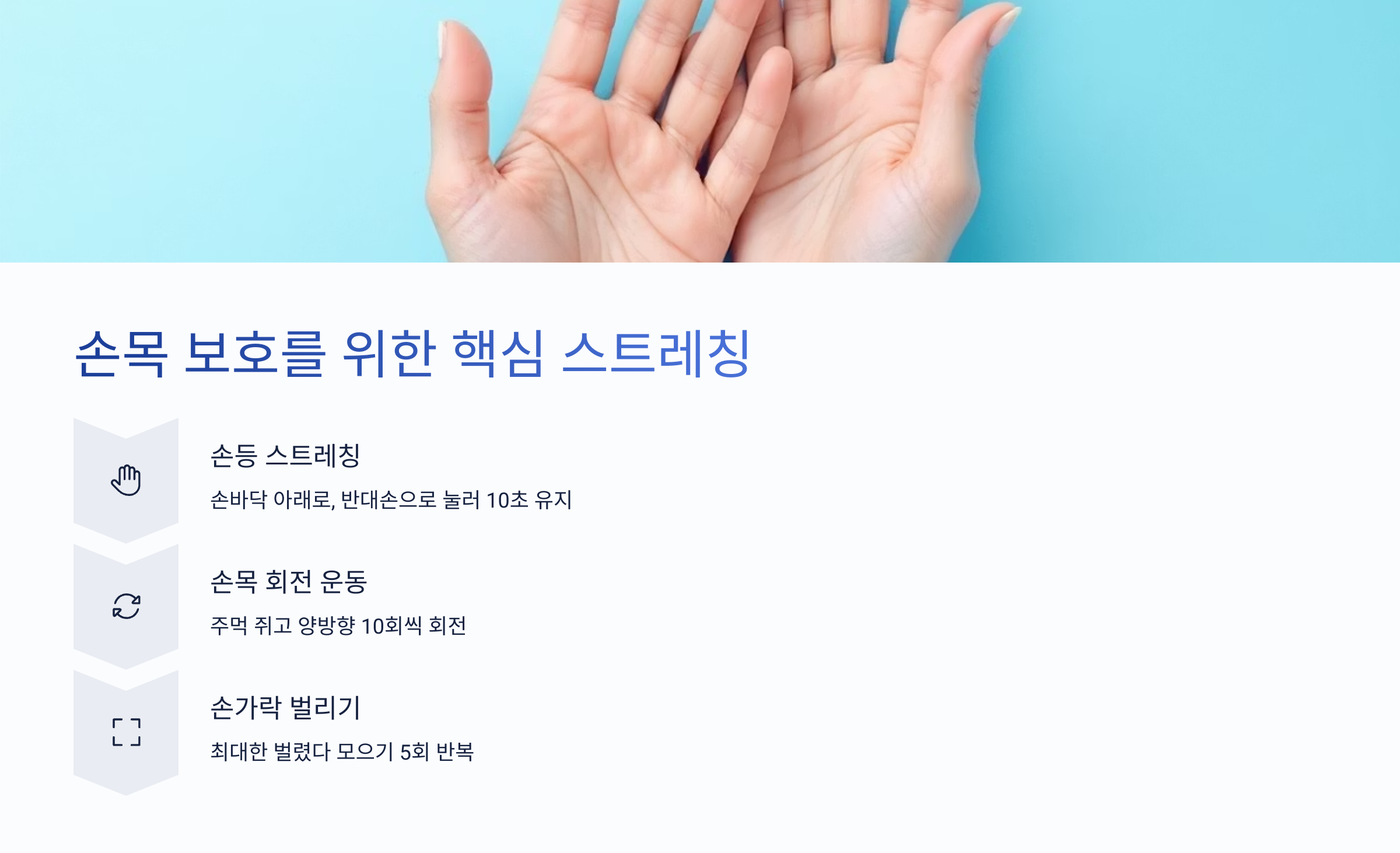 이 간단한 스트레칭만으로도 손목 통증과 경직을 상당히 줄일 수 있어요! 🎯
